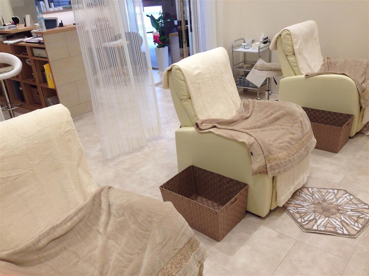フットバス+爪の長さ形の整え+甘皮処理+角質除去+アロママッサージ+保湿クリーム仕上げ